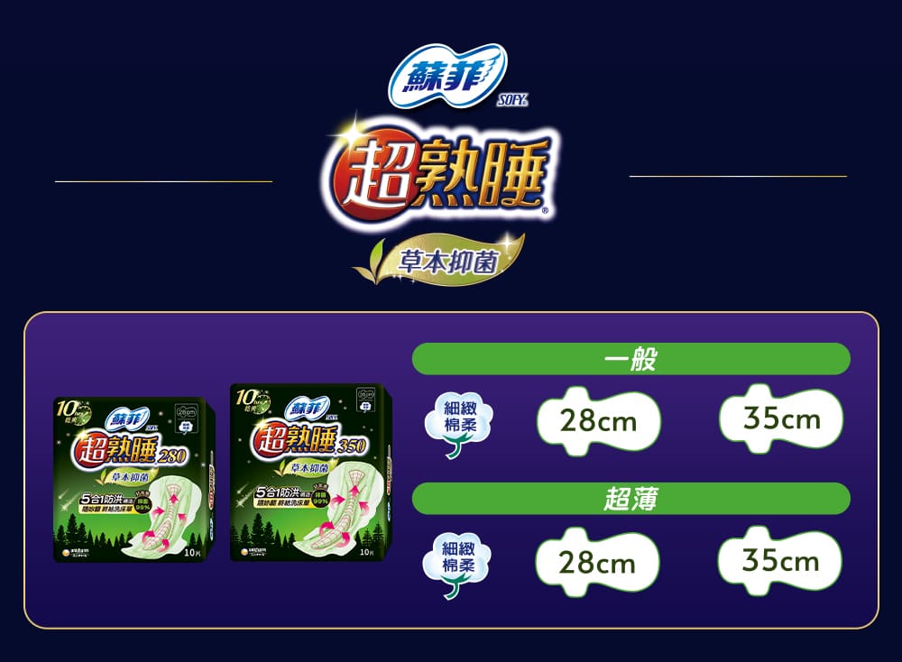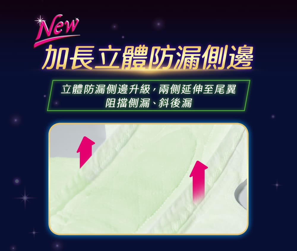 綠色設計有抑菌/潔淨感,整晚收力好並且乾爽不回滲,材質舒服貼身,可以放心睡整晚~